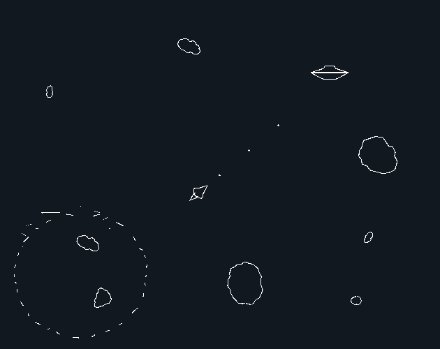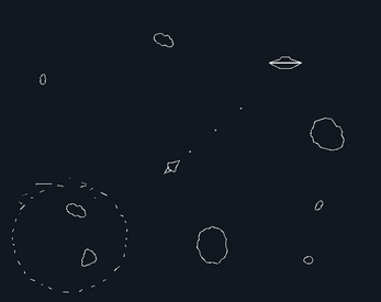 Minimalist vector Asteroids prototype with crisp line art and satisfying geometric explosions on every hit.